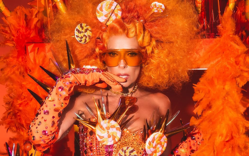 A apresentadora escolheu um body enfeitado com pirulitos coloridos, complementado por uma peruca ruiva vibrante que harmonizava perfeitamente com o tema lúdico da noite. Para completar o visual, Galisteu optou por botas em tons de roxo e laranja, criando uma combinação cromática que destacou sua presença marcante no evento.